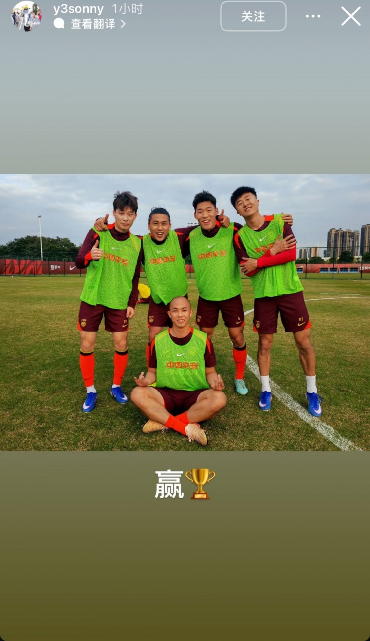 当天入选国足考验名单的泰山后卫刘洋更新社媒,晒出与张玉宁、黄政宇等的合影,并配文写谈:“赢🏆”。