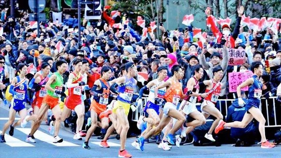 箱根驿传,由日本马拉松之父金栗四三等东说念主于1920年所创办,总距离217公里,去程5个区间,回程5个区间,每个区辗转近一个半马,由参赛大学构成的10东说念主团队尽力完成。