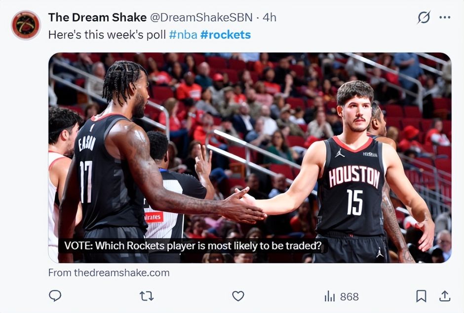 火箭媒体也开动让火箭球迷投票选出不错用于往返补强的球员,当今谢泼德、伊森两东说念主的投票率较高,伊森协议终末一年,谢泼德因为躯壳天资受限防御端履行上不契合火箭体系。