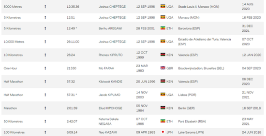 2021年寰球田径被概况的路跑状貌记载变化: