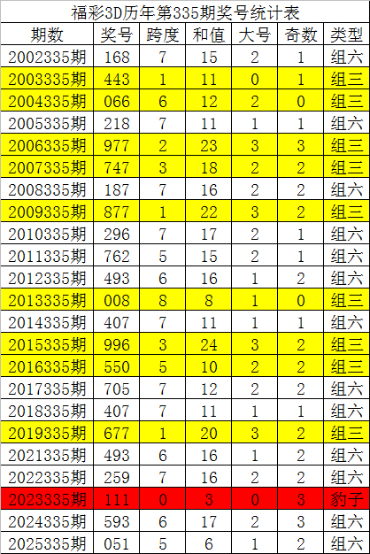 福彩3D第2025335期奖号为051。