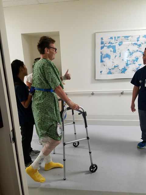 科林装上假体后进行康复寻查。