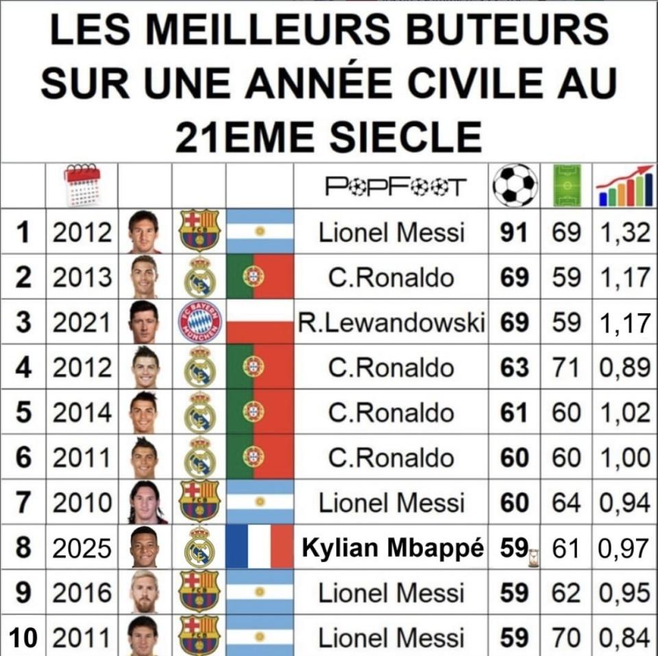 最近Pop Foot发布了21世纪当然年进球最多弓手榜,梅西、C罗、、等顶级前卫着实占满前十。榜单里既有梅西2012年打进91球这么的恐怖数据,也有C罗屡次单年60+进球的高产发扬,还出现了2025年仍在进行中的姆巴佩59球。谁的当然年火力最夸张、姆巴佩在本年年底前还能把这一滑数字冲到多高,自身就满盈让东谈主反复拿出来接洽。数据结束北京时辰2025年11月29日。