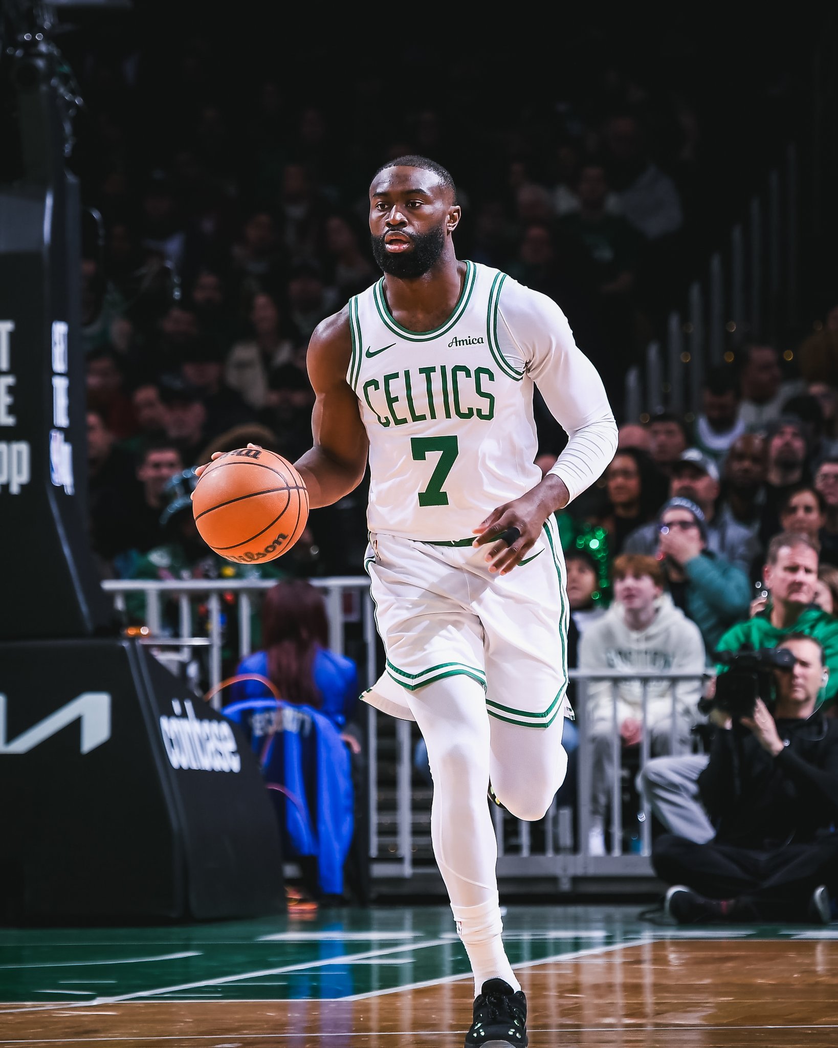 虎扑12月17日讯 凯尔特东说念主官方更新X,晒出一张凯尔特东说念主球员杰伦-布朗的赛场照与球迷共享。